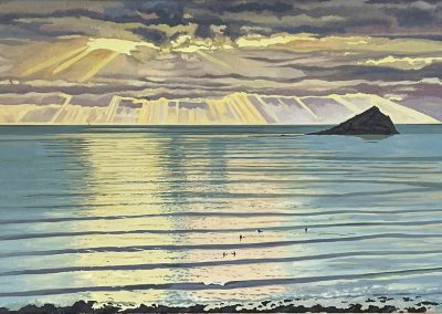 From an early interest in photographing reflections of water, Chris moved to oil paintings mainly capturing the interplay between reflections and seeing into the water. Since moving to Devon Chris has particularly focussed on paintings of the Yealm and Wembury Bay.