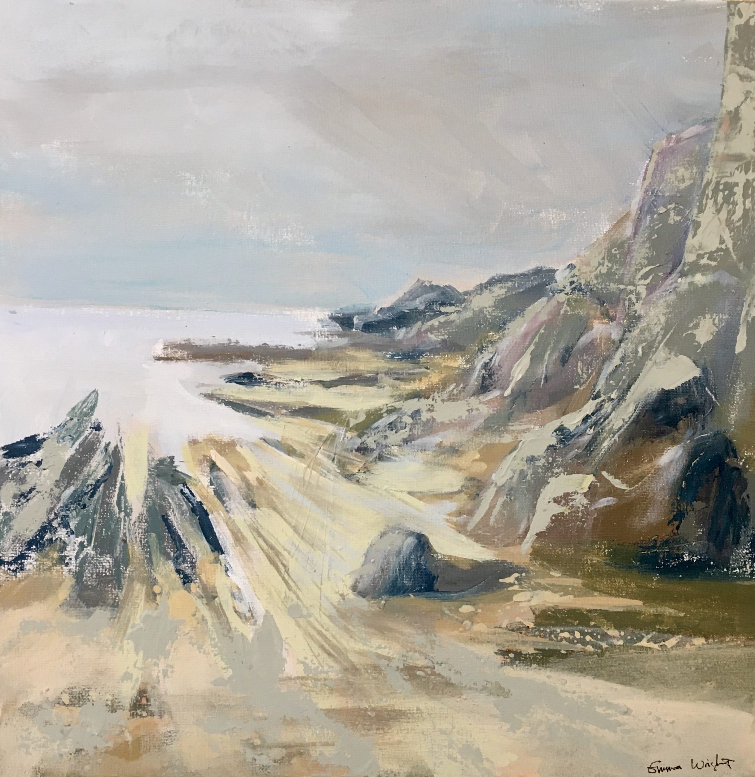 My background is in textiles, many years ago supplying agents selling fashion textile print in London, New York and Hong Kong. I have recently decided to focus on my art leaving a teaching career , having taught art graphics and photography up to A level for 28 years! My work is a mixture of paint and print inspired by the sea. I am interested in layers, light, mark making, the feeling of a place